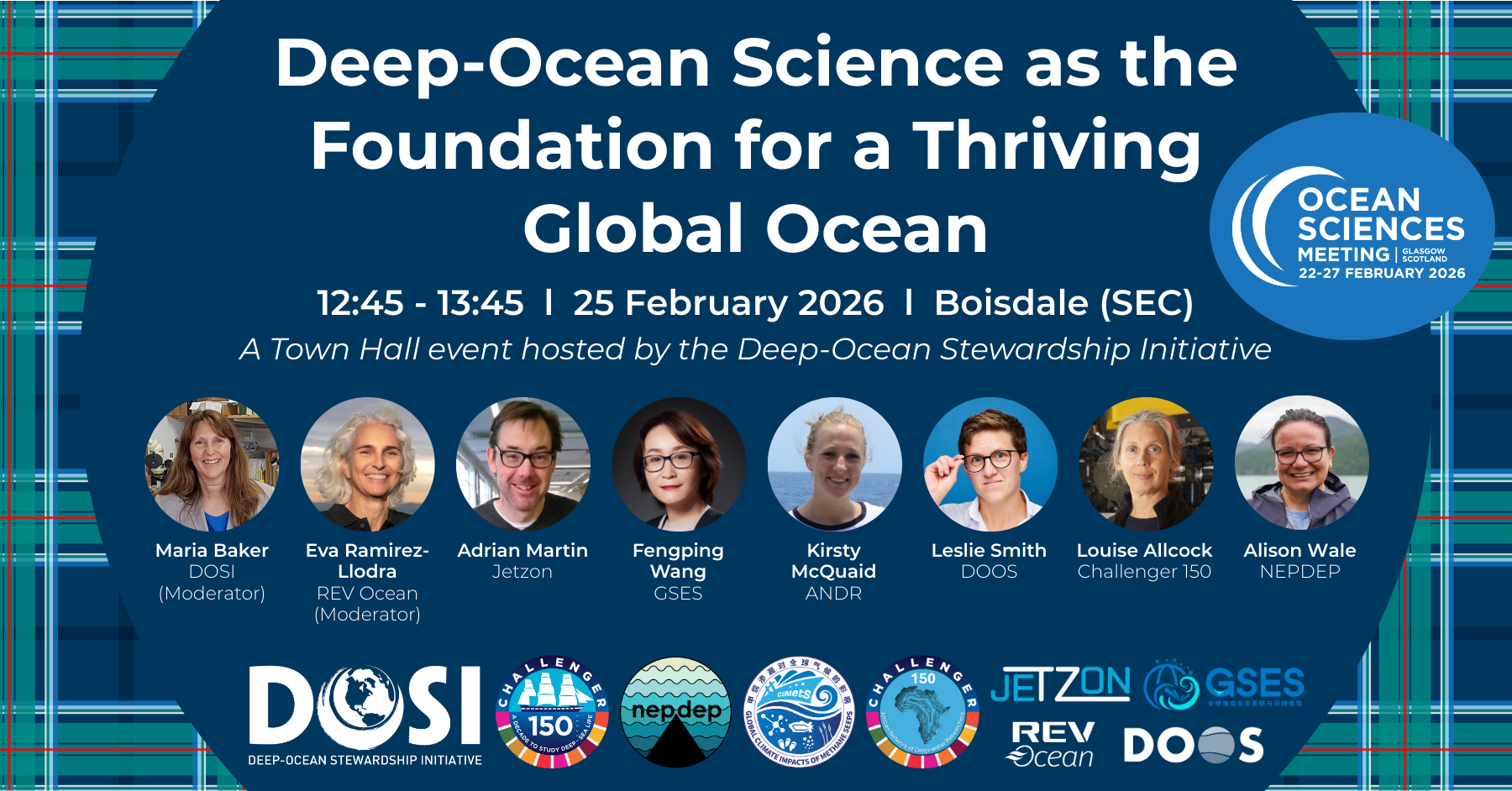 DOSI is hosting a Town Hall at the Ocean Sciences Meeting in Glasgow, focused on the essential role of deep-ocean science in underpinning a healthy, resilient, and productive global ocean. This session will bring together researchers, policymakers, and practitioners to discuss how deep-ocean knowledge supports effective ocean governance, informs international agreements, and enables sustainable management across areas within and beyond national jurisdiction.